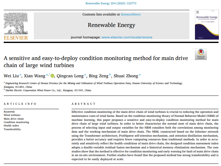 12月1日,顶级国际期刊《Renewable Energy》正式发表了我院风电技术与装备研究所科研人员在大型风电机组主传动链状态监测领域取得的最新研究进展。