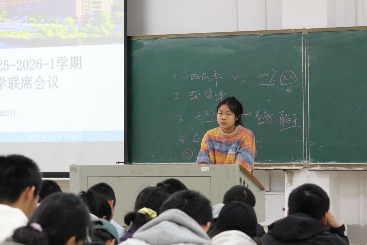 为明确新生班团委干部职责,夯实班级管理基础,助力新生迅速融入并适应大学生活,10月21日下午,2025级班团学联席会议在第五教学楼1-1教室顺利召开,学工办主任唐姣、辅导员尹利艳、学生会部分干部及全体25级班团共同参与本次会议。