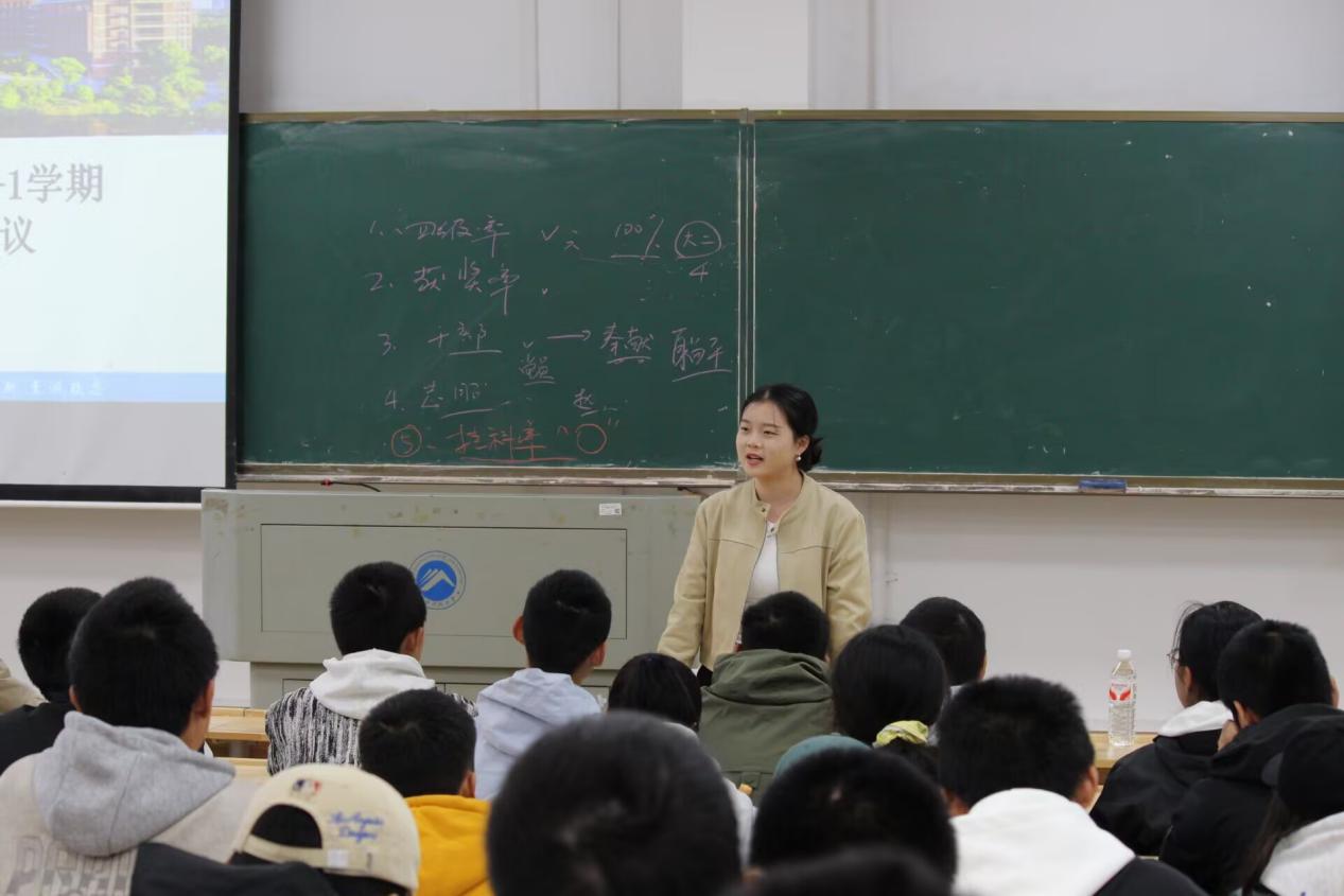 尹利艳就班级管理和提升综合素质进行了更为细致的补充安排。尹老师鼓励大一新生积极参与各类竞赛比赛,在实战中积累宝贵经验,提升自身综合素质。同时,她特别强调了提升大学生防诈骗意识的重要性,提醒同学们时刻保持警惕,避免陷入诈骗陷阱。此外,她还对请假规范提出了明确要求,以确保校园秩序的稳定和学生学习的正常进行。