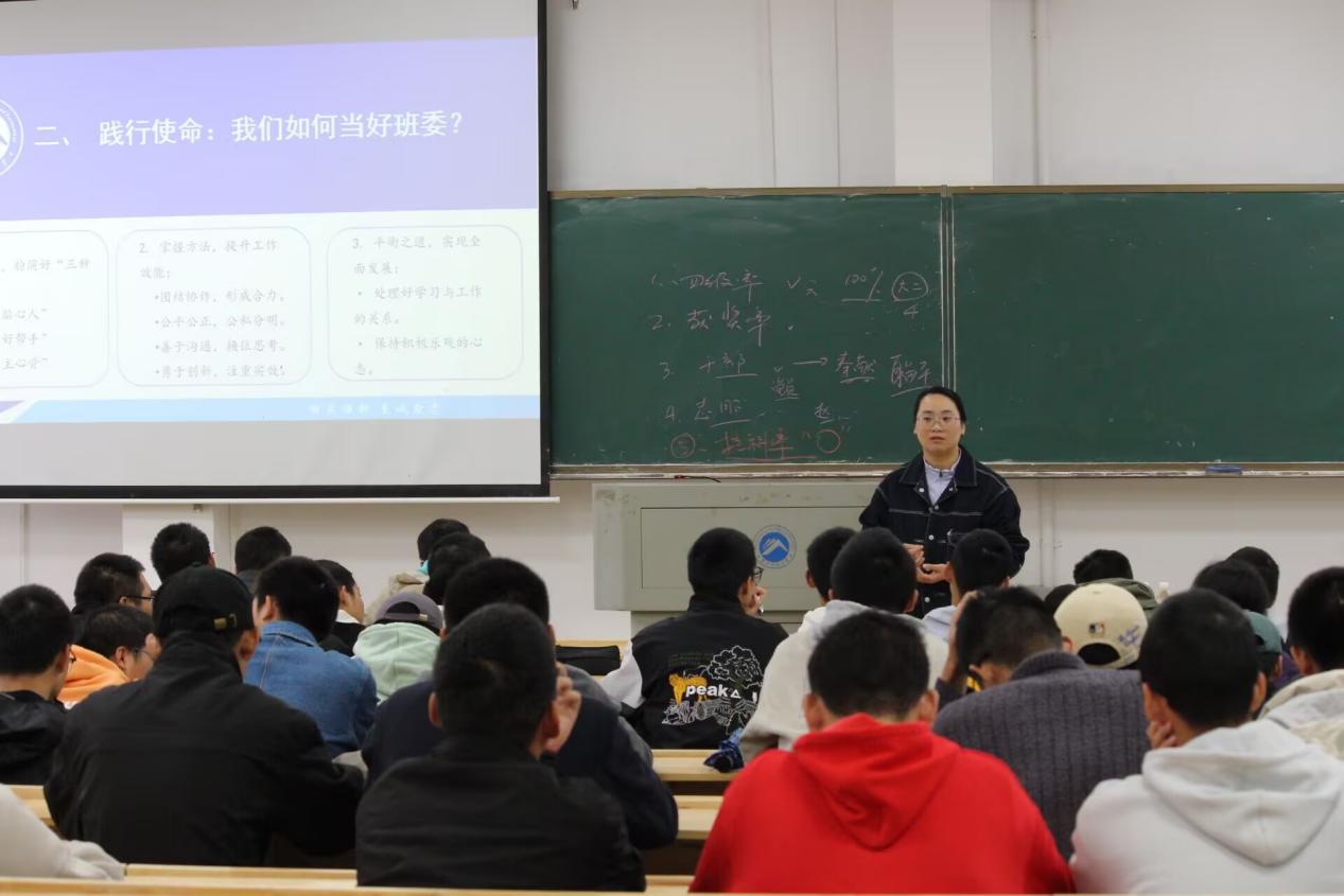 唐姣针对25级新生在大一期间的各种重要考试及日常生活,做出全面且细致的总体部署及安排。她着重指出,四级通过率、获奖率和挂科率不仅是衡量学生个人学习成果的关键指标,更是考察班级凝聚力、团结性和综合实力的重要体现。她殷切期望班团干部能够充分发挥桥梁纽带作用,积极与班上同学展开深入沟通。通过每周定期召开班委小会,及时且准确地向辅导员反馈班级动态,为营造良好的班级氛围贡献力量。