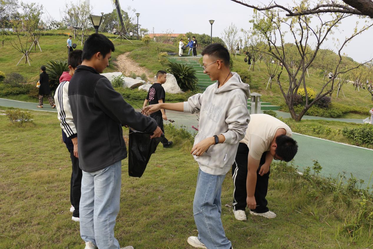 活动中,师生们分工明确、干劲十足。地面清扫组沿着步道和草坪细致捡拾纸屑、烟头、饮料瓶等各类垃圾;设施清洁组重点擦拭长椅、宣传栏等公共设施,努力清除顽固污渍;垃圾清运组则将各区域垃圾分类打包后及时运送至指定回收点,确保“清得彻底、运得及时、不留死角”。