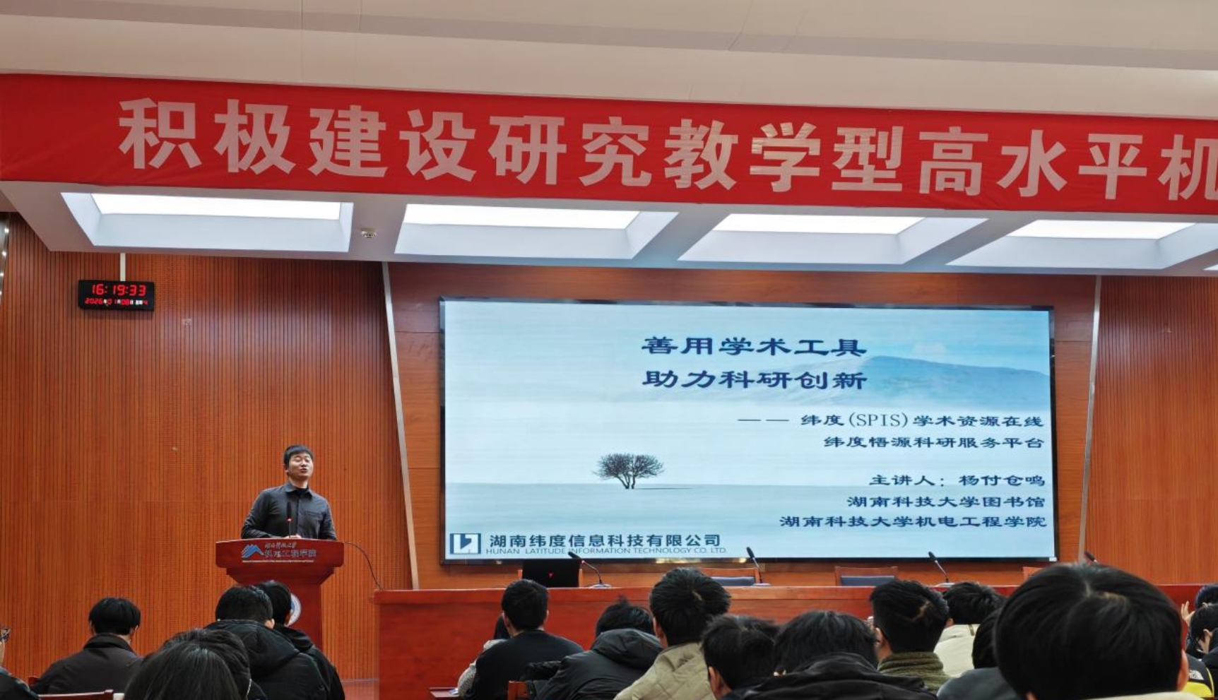 为提升研究生学术资源利用效率,助力科研工作提质增效,1月8日下午4点,“善用学术工具 助力科研创新”纬度系列数据库高效利用专题讲座在立功楼6-2教室顺利开展。纬度学术高级培训师杨付仓鸣受邀主讲,研究生辅导员喻亦荣及2025级研究生共同参与。