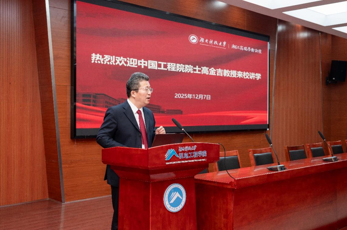 12月7日上午,中国工程院院士、北京化工大学教授高金吉受邀来校,参观调研科研平台,开展学术讲座,指导我校学科建设发展。校党委副书记、校长尹双凤主持湘江高端学术论坛报告会,副校长赵前程,本科生院院长宾光富,机电工程学院院长戴巨川和部分师生代表参加有关活动。