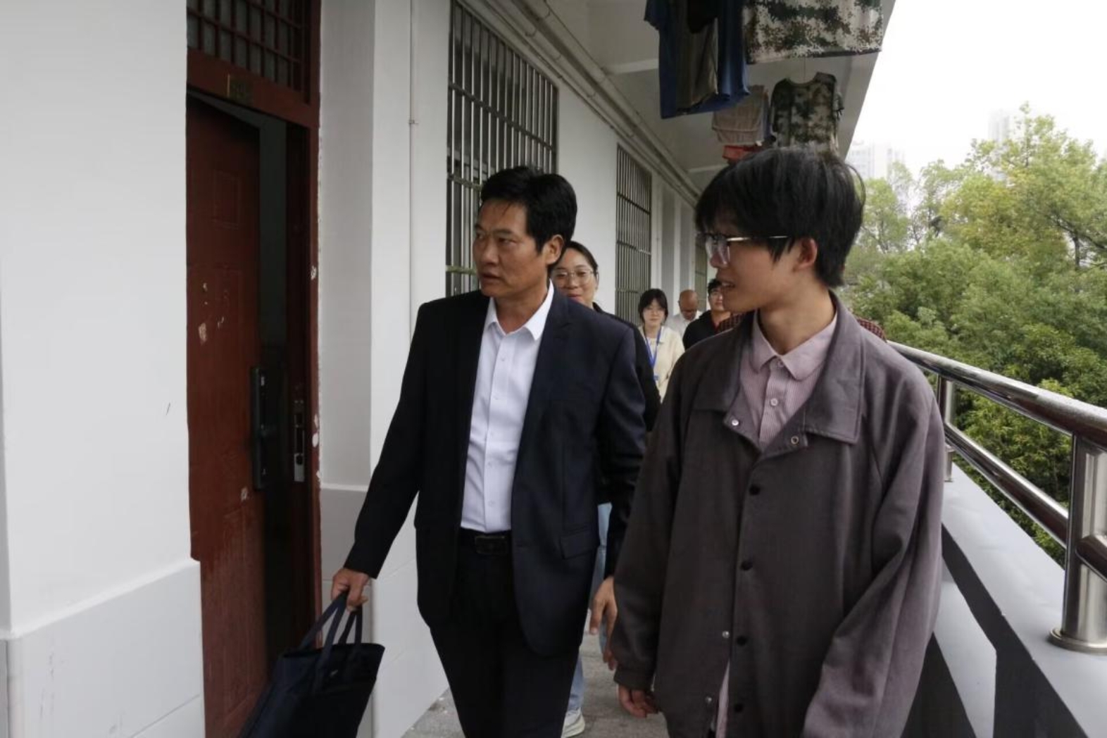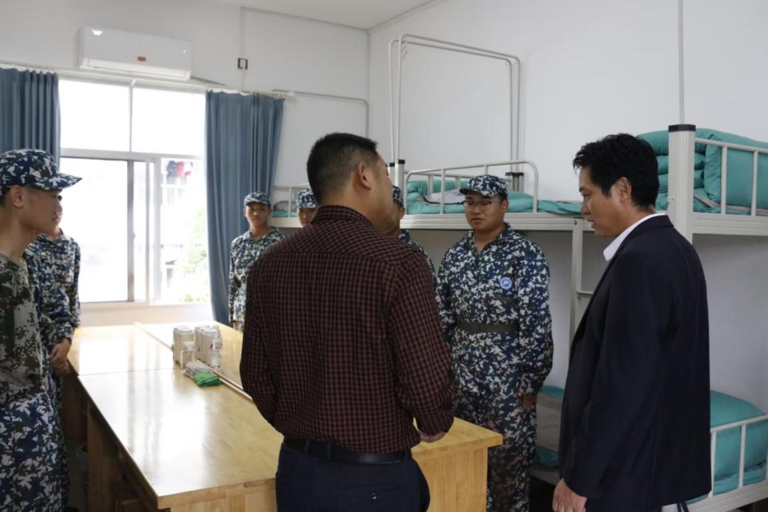 在宿舍内,赵校长查看新生内务,对叠放规整的“豆腐块”被子、有序的生活用品及洁净地面频频点头,肯定机电学子“军训初期便以严谨态度适应集体生活”的表现。他着重叮嘱新生:“军训体力消耗大,务必保障饮食休息,遇到训练不适或生活难题,要第一时间联系辅导员或学校。”温暖叮嘱让宿舍氛围轻松融洽。